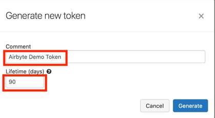 3. Enter a description for the token and how long it will be valid for (or 0 for a permanent token):